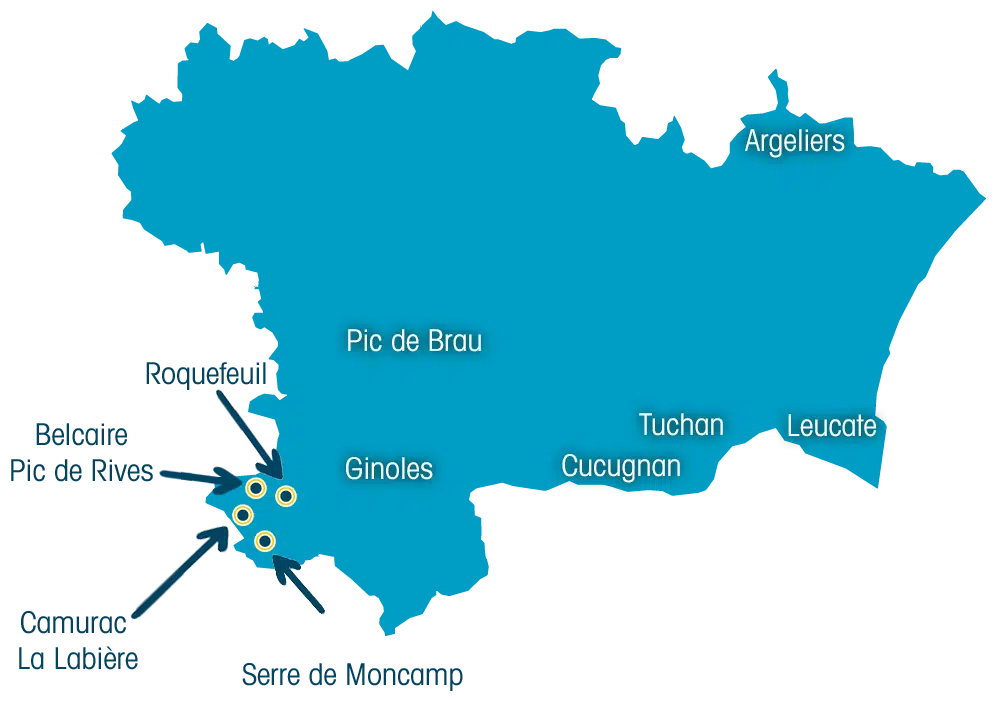 Description: ATENTION ! chantier démantèlement parc éolien 1 - respecter scrupuleusement les consignes affichées à l'entrée du chantier (se signaler, respecter, etc.) 2 - les infos sont également données sur cette page Intranet 3 - tout manquement fera l'objet d'un signalement à la gendarmerie (l'auteur sera SEUL tenu responsable et en cas d'incident, ni la RC FFVL, ni quelconque assurance ne saurait le couvrir !!!) 4 - si d'autres info contacter Frédéric BOLLE - CDVL11 - 06 89 01 23 65 Aucune restriction d'utilisation pour ce site. Il y a un couloir aérien militaire qui passe une paire de kms en avant du relief (au Nord). Finesse 5 nécessaire pour arriver à l'atterrissage. Les 3/4 du vol se faisant en ascendance dynamique, cela ne pose en général aucun problème. Mais en cas de conditions défavorables (vent nul), il ne faut pas trop laisser descendre devant le décollage si on veut atteindre l'atterrissage avec un peu de marge. Atterrissage légèrement petit situé entre les vignes.