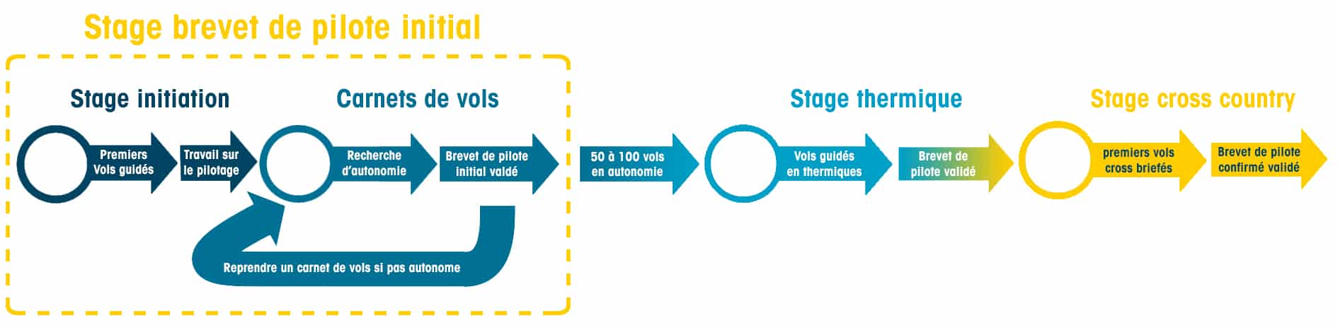 Grille de progression avec les stages parapente de Kymaya