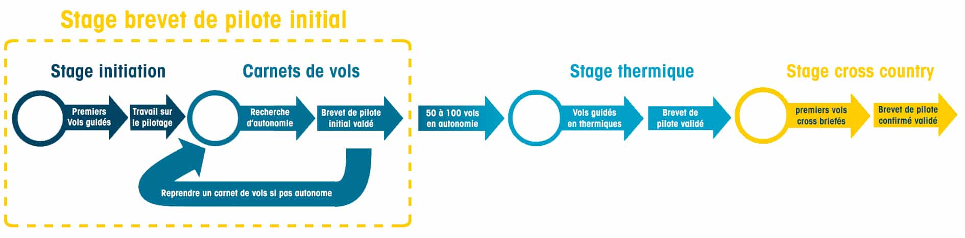 Grille de progression avec les stages parapente de Kymaya